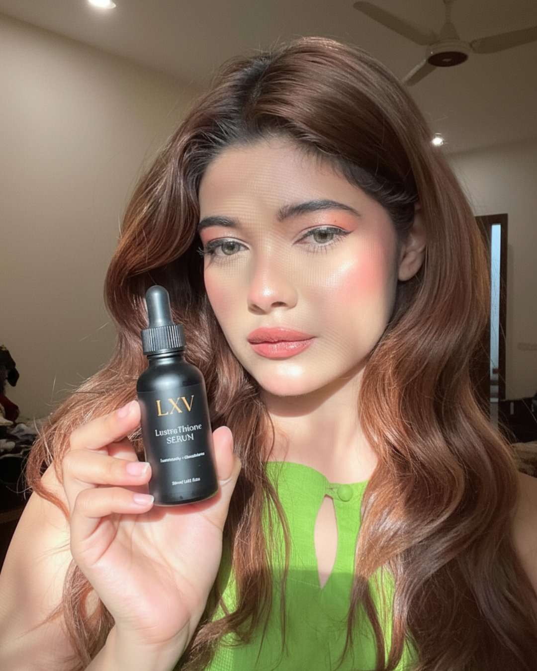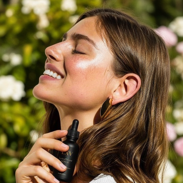 "People keep asking what I’m using on my face. My dark spots are fading, and my skin feels alive again. Obsessed with LustraThione!"